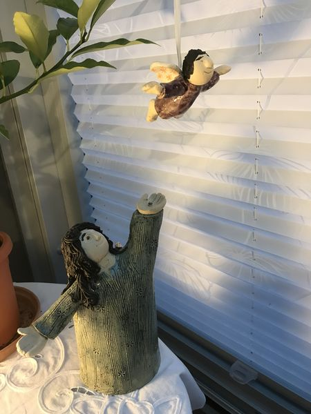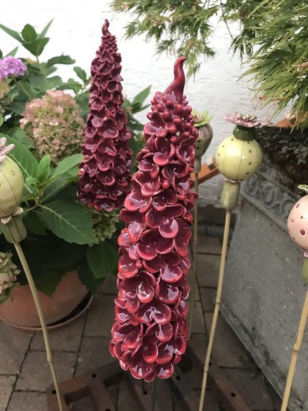 Zum Frühlingsanfang wird das Leben wieder bunt. Wir bauen Kugeln, Vögel, Vogeltränken, Rittersporne, Elfenstäbe, Pflanzenstecker, Samenkapseln, kleine Pflanzgefäße, und und und... Hierzu arbeiten wir mit Platten, Eindruckschalen, Ausstechern, Schablonen, Mustern und Stempeln, aber vor allem mit unseren Händen. Der Phantasie sind keine Grenzen gesetzt. Über eigene Bilder, Wünsche und Ideen freue ich mich. Wir werden an zwei Freitagen gestalten und am dritten Freitag mit vielen verschiedenen Glasuren unsere Werkstücke verschönern. Einen weiteren Termin vereinbaren wir zum Abholen der Werke und freuen uns bei einem Kaffee über Ihre schönen Arbeiten. Vielleicht haben Sie dann sogar schon neue Ideen? Teilnehmerinnen aus meinen letzten Kursen haben mir wunderschöne Fotos geschickt, die zeigen, wo ihre Kunstwerke ihren Platz gefunden haben. Danke für die schönen Bilder!